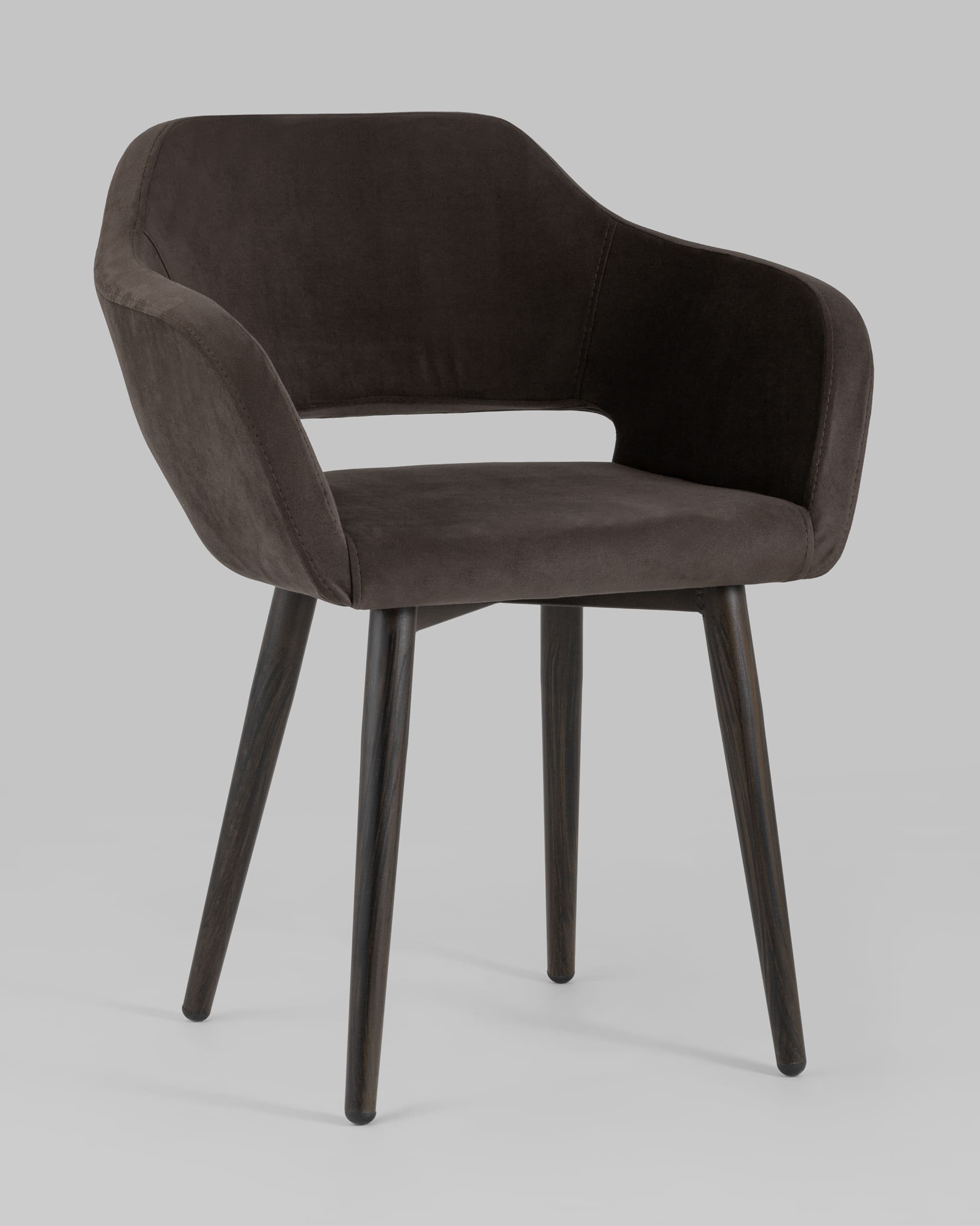 Стул с подлокотниками Саймон велюр темно-коричневый